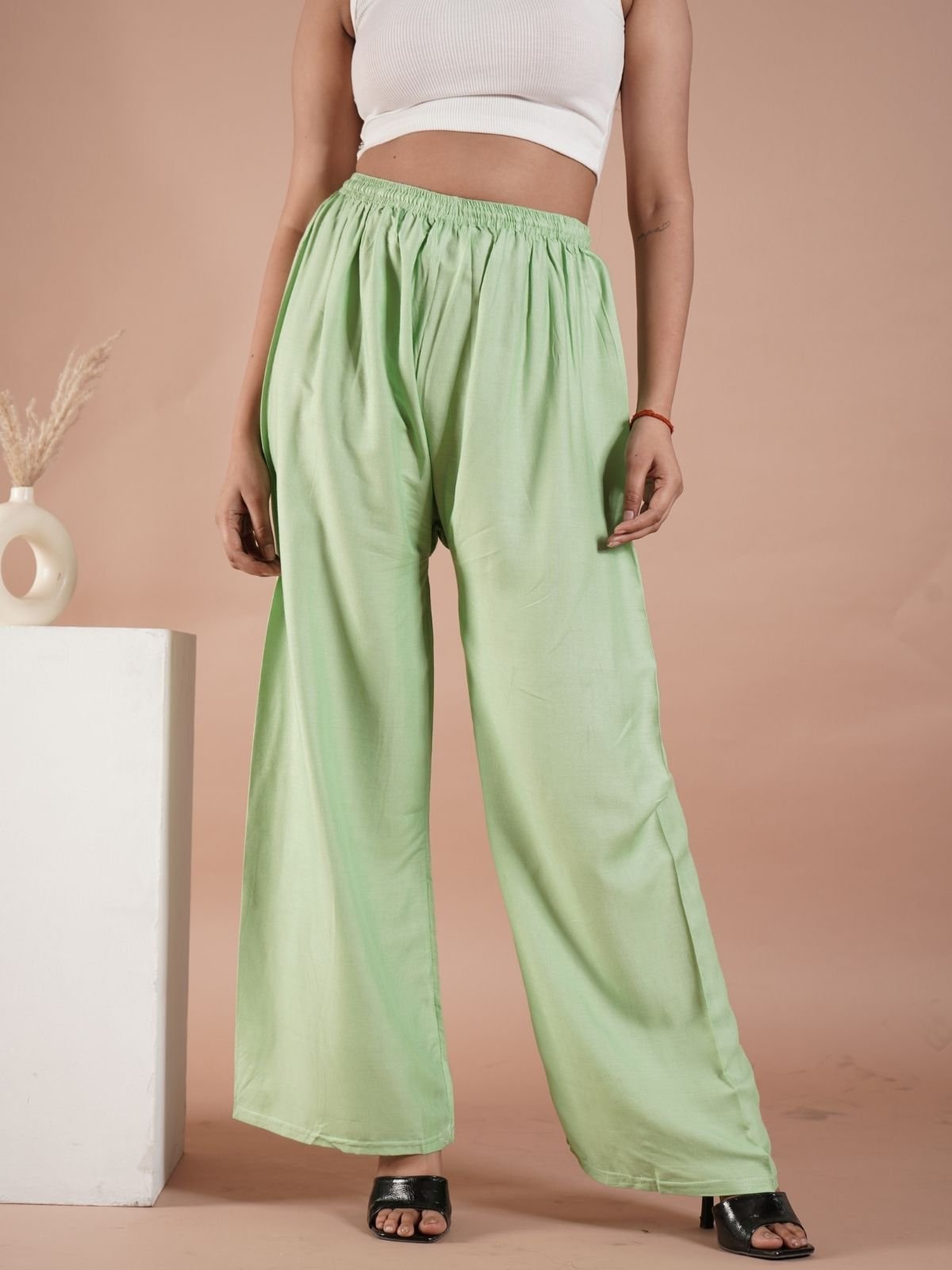 Light Green Women’s Plain Palazzo Pants – Comfortable & Stylish Palazzo for Daily Wear | Teradozz