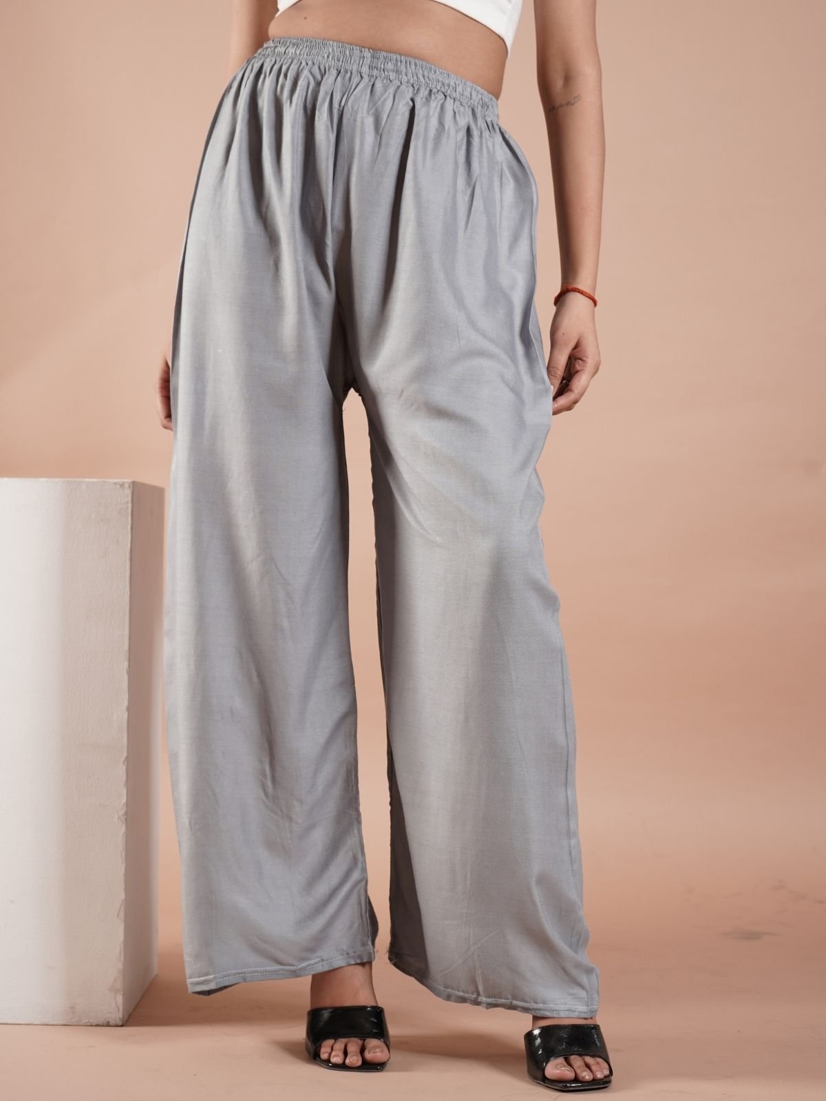 Light Grey Women’s Plain Palazzo Pants – Comfortable & Stylish Palazzo for Daily Wear | Teradozz