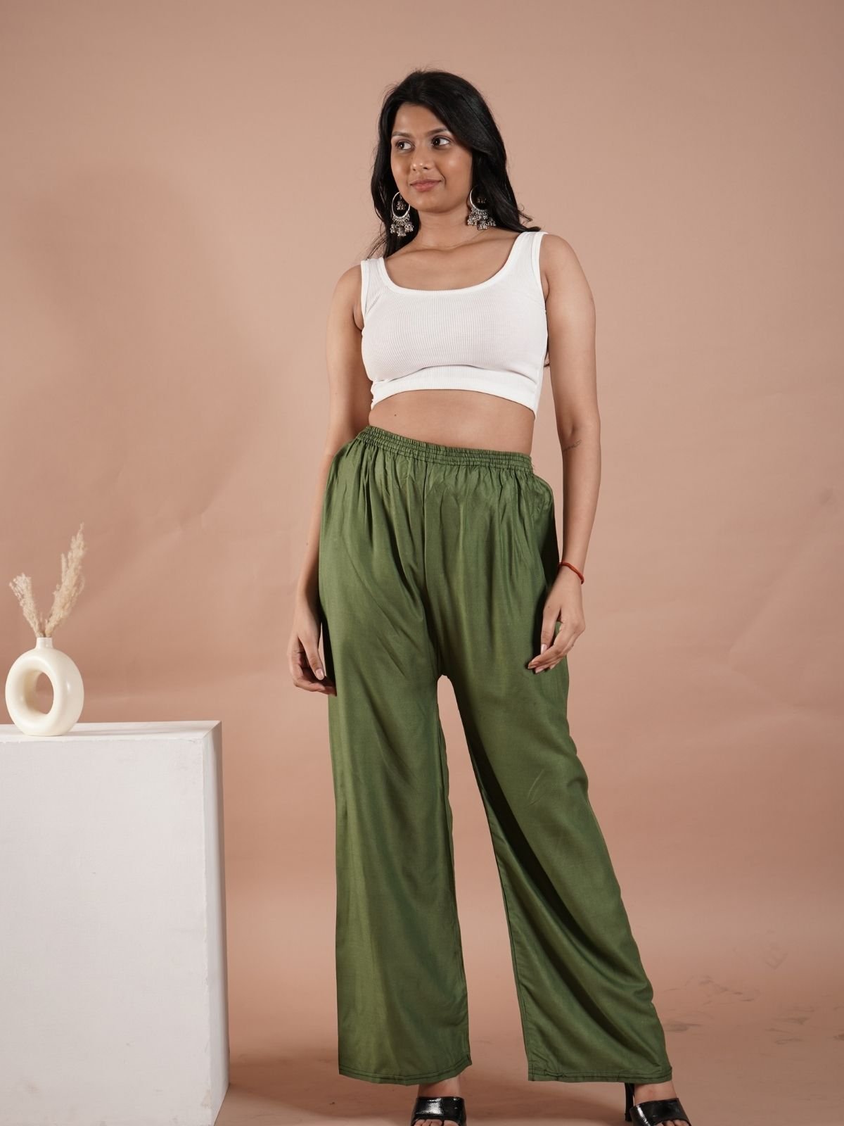 Mehendi Green Women’s Plain Palazzo Pants – Comfortable & Stylish Palazzo for Daily Wear | Teradozz