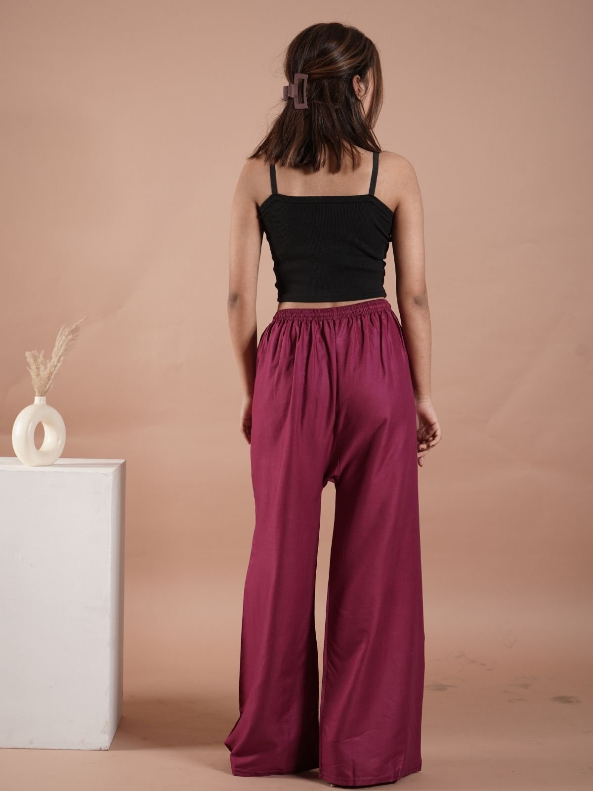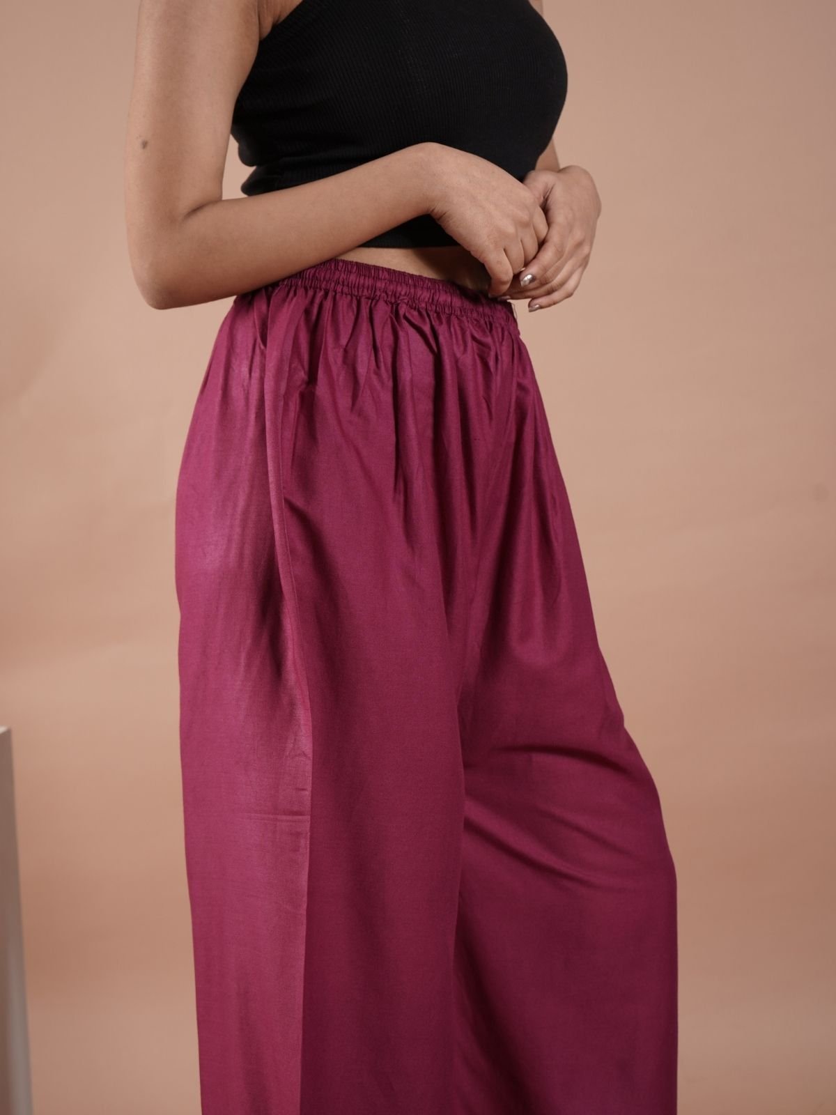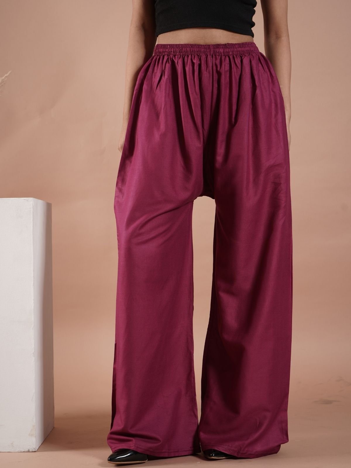 Wine Women's Plain Palazzo Pants - Comfortable & Stylish Palazzo for Daily Wear | TeradozzWine Women’s Plain Palazzo Pants – Comfortable & Stylish Palazzo for Daily Wear | Teradozz
